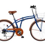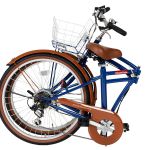 カジュアルなスタイリングの24インチ折畳自転車。手軽なサイズながら6段変速搭載で街乗りも快適。フロントキャリアには付属のバスケットを取り付けてご使用いただけます。